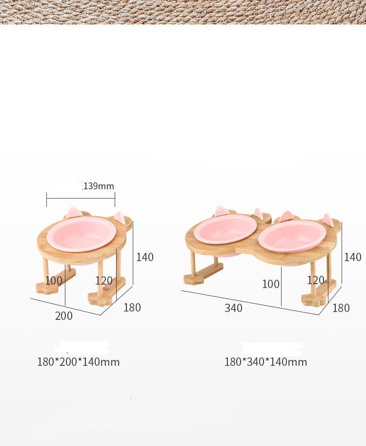Ceramics Puppy Cat Dog Pet Single And Double Food Bowl For Eating And Drinking With Wooden Frame Pets Supplies Feeding Dish - Zambeel